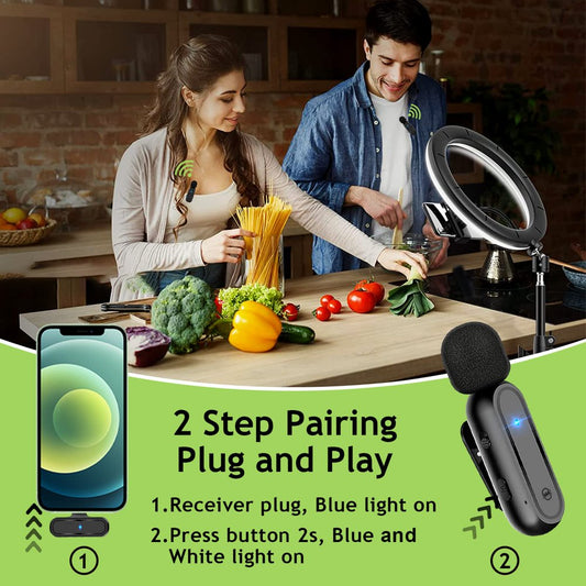 2 Pack Wireless Lavalier Microphones for Iphone Ipad W/Charging Case,Plug-Play Mini Microphone,12H 800Mah,Noise Reduction,Clip on Lapel Mic for Video Recording Vlog,Tiktok,Youtube,Interview