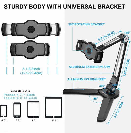 Abovetek Kitchen Tablet Stand – Highflex 360 Counter and Wall Wobble Black