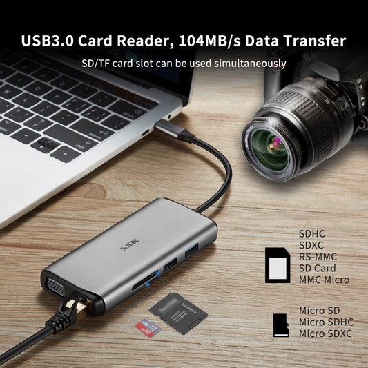 USB C Docking Station,11 in 1 Triple Displays USB Dock Dual Monitor of HDMI, VGA, Multiport Adapter with Ethernet,Pd3.0,Sd TF Card Reader,3Usbs for Macbook Pro/Air(Thunderbolt 3) Typc C Laptop